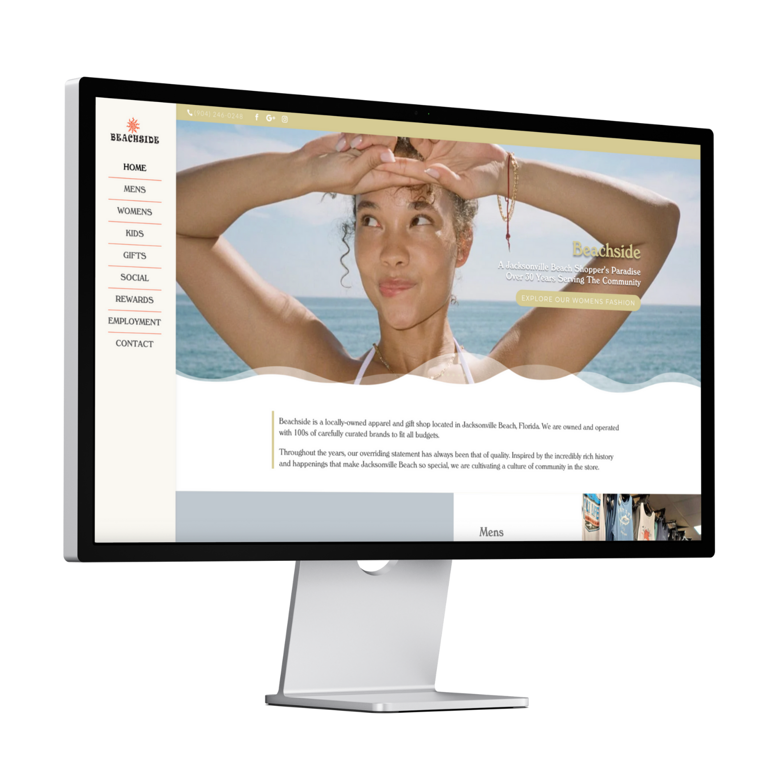 Beachside, the first and oldest swimwear shop on Jacksonville Beach, Florida, relied on consistent digital updates to stay connected with its local audience. I maintained and refreshed the website to highlight timely content such as seasonal promotions, holiday sales, and community events.